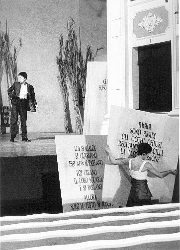 A Villa Agatha i due fratelli ricostruiscono e smontano, con l'ausilio di inconfessabili ricordi, il loro passato. In questo allestimento Salmon procede per larghe metafore teatrali, nelle quali tempo e spazio si mescolano in un incrocio di piani visivi e sonori: le didascalie del testo della Duras per esempio, sono scritte su grossi pannelli che le due attrici spostano da una parte all'altra della platea, come fossero i mobili da sistemare per la definitiva chiusura di Villa Agatha.